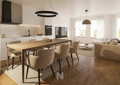 Construction respectueuse de l'environnement avec système de chauffage PAC et production d'électricité (panneaux Photovoltaïques). Immeuble de 6 logements de trois 3.5 pièces et trois 4.5 pièces.
