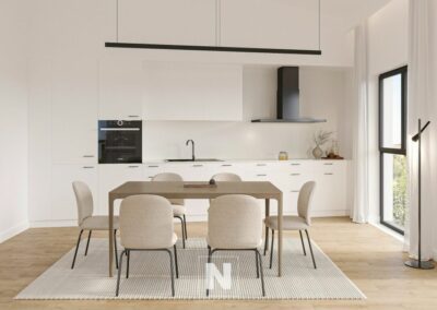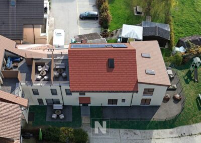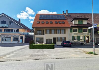 Construction respectueuse de l'environnement avec système de chauffage PAC et production d'électricité (panneaux Photovoltaïques). Immeuble de 6 logements de trois 3.5 pièces et trois 4.5 pièces.