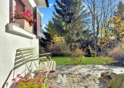The landscaped garden and large tree-lined terrace ensure complete privacy and a green setting.